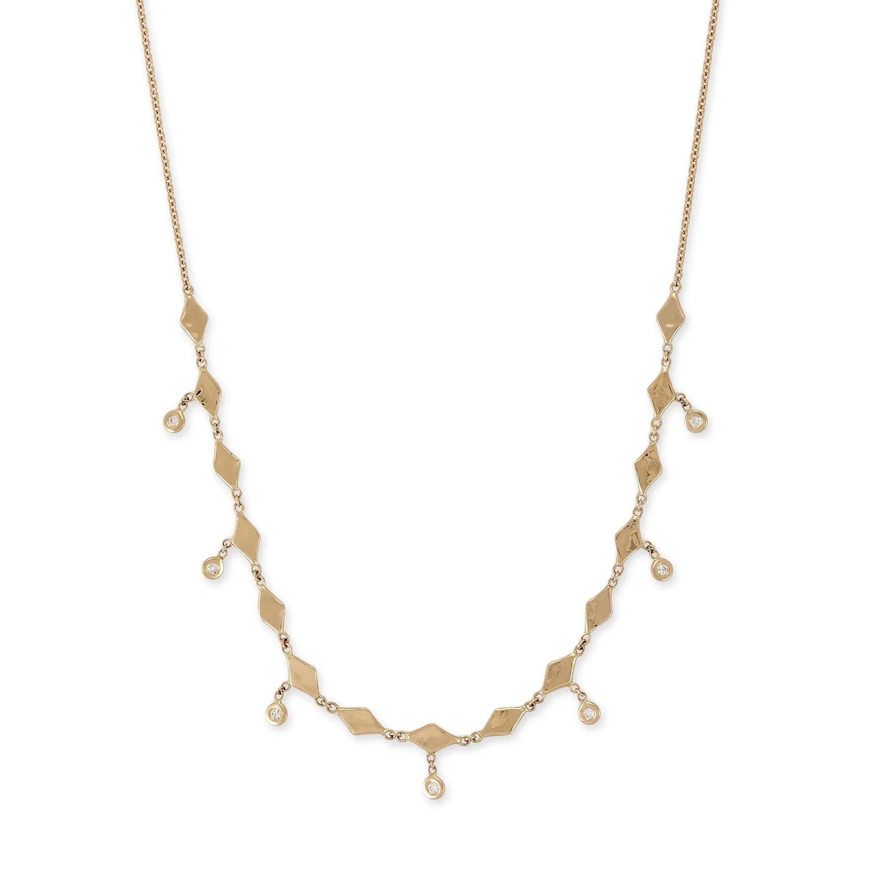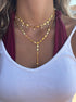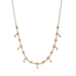 A gold-plated necklace featuring a geometric pattern with delicate crystal drop charms. A unique design that blends structure and shimmer — perfect for layering or wearing solo.