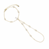 A gold-plated hand chain with delicate chains and evenly spaced sparkling stones for a soft, elegant look.