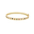 A sleek gold-plated bangle adorned with colorful gemstones in unique shapes, adding a playful yet elegant touch to any look.